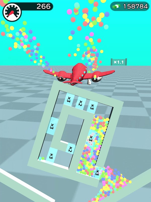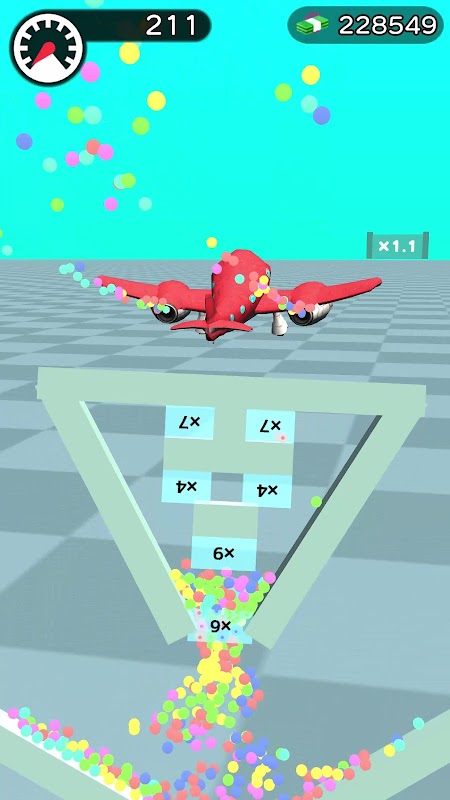 Increase the number of balls that move by physics calculation and make the vehicle run.
