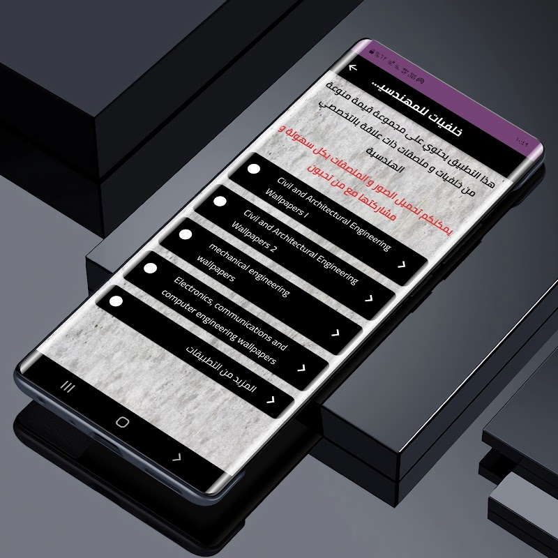 Ứng dụng hình nền kỹ thuật chứa các biểu tượng và thiết kế được các kỹ sư trong nhiều lĩnh vực quan tâm, bao gồm kỹ thuật dân dụng, kiến trúc và kỹ thuật cơ khí, ngoài điện tử, truyền thông và kỹ thuật máy tính. Ứng dụng cho phép tải xuống hình nền bằng một cú nhấp chuột và cũng có thể được chia sẻ với những người khác bằng WhatsApp, Facebook và các phương tiện truyền thông xã hội khác