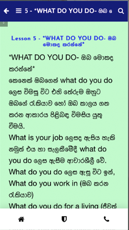 This app for you, The adults who are willing to be fluent in English but have a feeling of fear of language and shy to use it. Here, through this app, you can easily have some sort of knowledge in English. This app contains business English terms, common mistakes, daily usage Phrases, Idioms, and Phrasal verbs. Adults can easily learn by using this app as all lessons are taught in Sinhala. This app helps to learn phrases used in emails, letters, and reports through the Business English section. Through the Common Mistakes section, you can easily find out your wrong spellings and wrong usage of words. It helps you to correct them out. The idioms and Phrasal verbs section will teach you about them. Moreover, through the Daily Usage section, you can improve your daily English usage patterns.