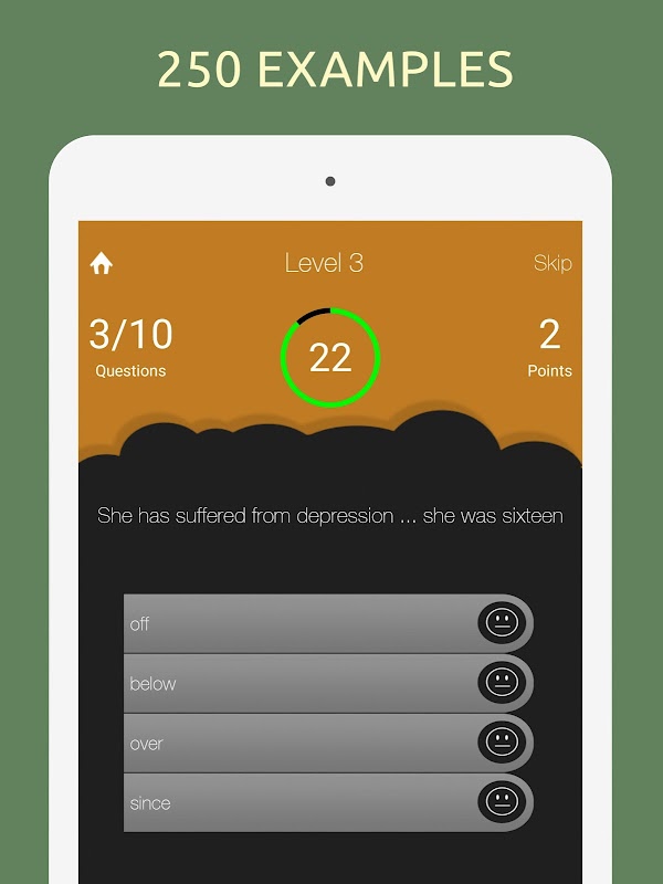 Thách thức chính mình - kiểm tra kiến thức của bạn và học giới từ tiếng Anh mới. Các bài kiểm tra có chứa 250 ví dụ.