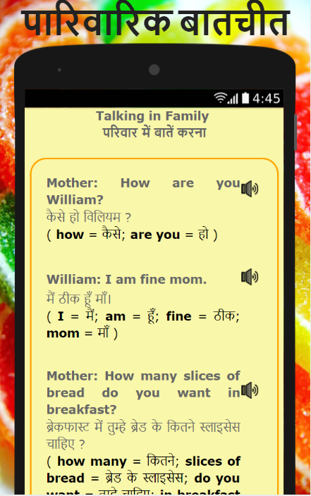 * Hindi to angreji application is an easy way to gain confidence. So, here is your opportunity to learn english speaking and improve your spoken english with this offline app.