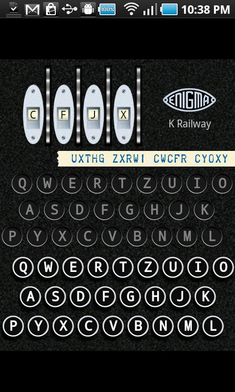 Bây giờ bạn có một sự lựa chọn: bạn có thể đọc các chữ cái tin nhắn được mã hóa quay trở lại các băng giấy và nhấn một phím một, như một nhà điều hành máy Enigma thực đã có thể làm, hoặc bạn có thể có một phím tắt:
