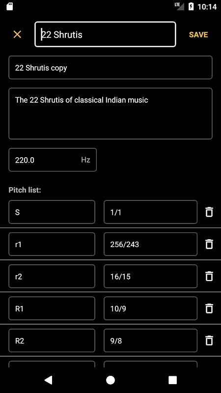 Mỗi thang âm có thể được chọn và bạn có thể chơi các nốt của nó để cảm nhận trước khi điều chỉnh nhạc cụ của mình.