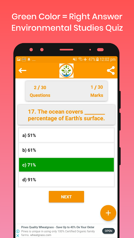 Bằng cách vượt qua bài kiểm tra và thử các câu hỏi, người dùng có thể nâng cao kiến thức về Môi trường của mình và có thể đạt điểm cao ở cấp trung học, cấp đại học và các kỳ thi cấp độ cạnh tranh.