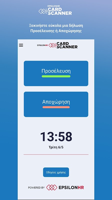 Với ứng dụng Máy quét thẻ của Epsilon HR kết hợp với Hệ thống con chấm công của tất cả các ứng dụng tính lương của Epsilon HR và Epsilon Smart Ergani, bạn sẽ có giải pháp hoàn chỉnh nhất trên thị trường về Thời gian kỹ thuật số, Thẻ chấm công kỹ thuật số, Chấm công và Tính lương cho doanh nghiệp của mình!