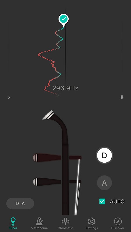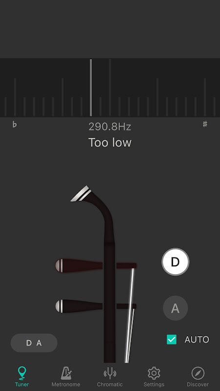 Ứng dụng này sử dụng micrô điện thoại của bạn để nghe và phân tích âm thanh trong thời gian thực và nhận ra chuỗi nào bạn đang phát, cho biết nếu chuỗi của bạn quá thấp hoặc quá cao.