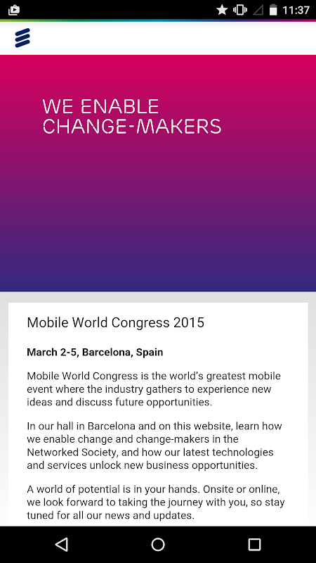 Information about Ericsson's presence at Mobile World Congress,