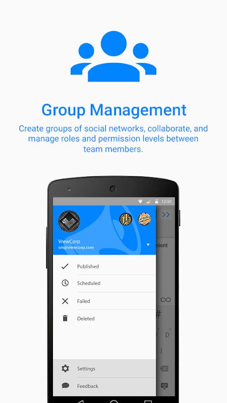 - UNIQUE: Group Management (available for Plus and higher plans acquired through the web: http://everypost.me/#pricing). Create groups of social channels, manage user level permissions and leverage these capabilities into your app too
