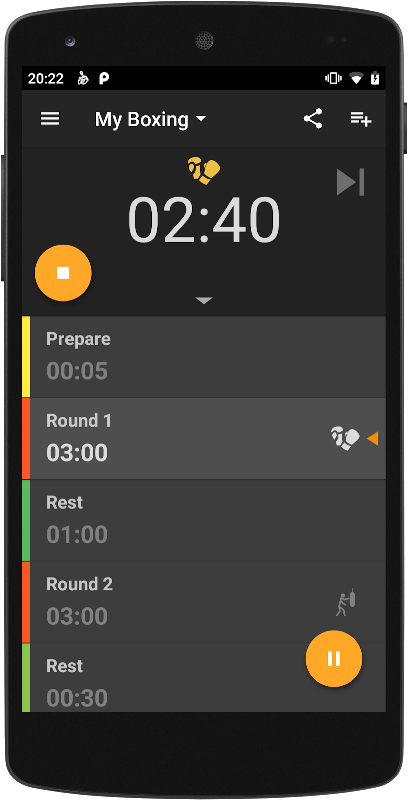 Đôi khi tập thể dục có thời gian không xác định để hoàn thành nó. Vì vậy, bạn có thể đánh dấu bài tập như vậy với vòi Tap vào tùy chọn tiếp theo và Evotimer không chuyển sang bài tập tiếp theo (phần còn lại) cho đến khi bạn chạm vào màn hình.