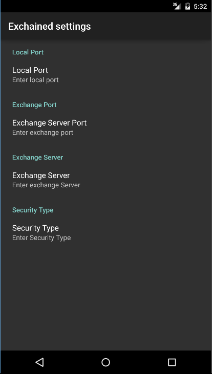 Ứng dụng hỗ trợ nhiều tài khoản trên nhiều máy chủ Exchange. Bạn cần một tài khoản hợp lệ và quyền truy cập trước vào máy chủ Exchange của bạn vì Exchained không thể có được điều đó cho bạn, nó cũng không hoạt động với các tài khoản Exchange yêu cầu chứng chỉ ứng dụng khách điển hình khi thiết bị được điều khiển bởi giải pháp MDM, chẳng hạn như Microsoft Trong giai điệu.