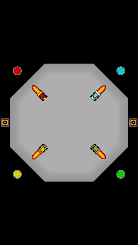 Play a car battle with up to 4 players in the same device or play against the device. Each player uses a single button to turn the car while the button is held down.
