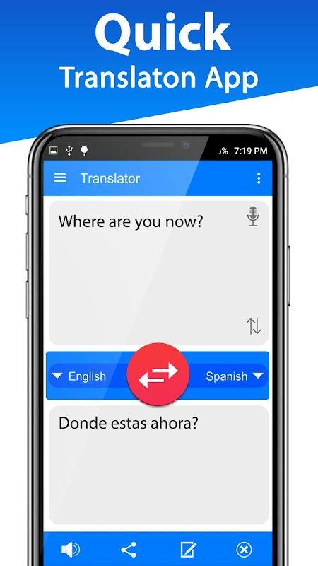 Translator 2019: Text & Voice Translate là công cụ dịch thuật mạnh mẽ nhất trên thiết bị Android của bạn. Dịch miễn phí tức thì là ứng dụng hoàn hảo để dịch văn bản và giọng nói nhanh trên điện thoại hoặc máy tính bảng của bạn. Trình biên dịch tiếng Việt dễ dàng, dịch từ tiếng Việt sang tiếng Anh tốt nhất và cũng có thể giúp bạn dịch tiếng Việt sang tiếng Việt.Tải xuống tất cả các từ điển dịch ngôn ngữ với việc thiếu một số từ ngôn ngữ. Nếu bạn là một phiên dịch viên ngôn ngữ sinh viên hoặc du lịch miễn phí năm 2019 sẽ giúp bạn học ngôn ngữ. Với dịch nhanh ngôn ngữ trực tuyến, bạn sẽ không gặp vấn đề về giao tiếp. Bạn phải có kết nối internet để sử dụng chính xác ứng dụng dịch miễn phí tất cả ngôn ngữ trên Android. Ứng dụng trao đổi ngôn ngữ này với phiên dịch miễn phí 2019 là phổ biến và cung cấp bản dịch cho hầu hết các ngôn ngữ khác nhau. Dịch giả ngôn ngữ miễn phí năm 2019 trở nên thực sự tiện dụng cho nhu cầu dịch thuật của bạn khi bạn đang đi du lịch khắp các quốc gia với các ngôn ngữ dịch khác nhau như là dịch giả văn bản miễn phí. Chỉ cần bắt đầu với một dịch giả miễn phí tất cả các ngôn ngữ tuyệt vời đa ngôn ngữ dịch 2019.