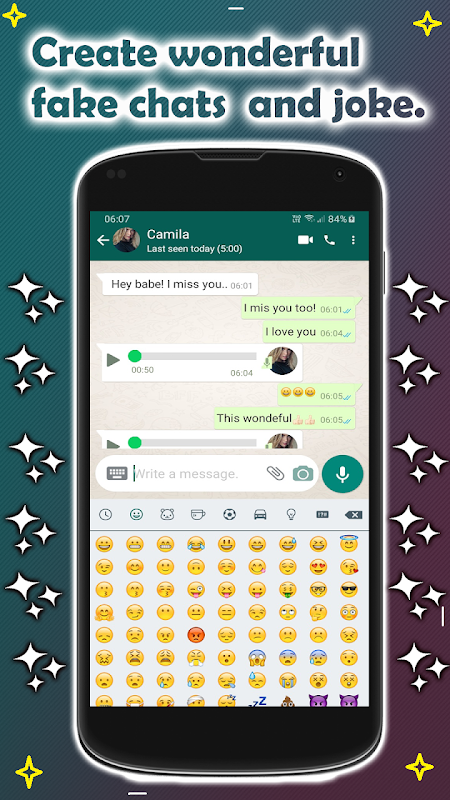 Fake chat conversation maker , allows you to create fake conversations and share it with your friends.