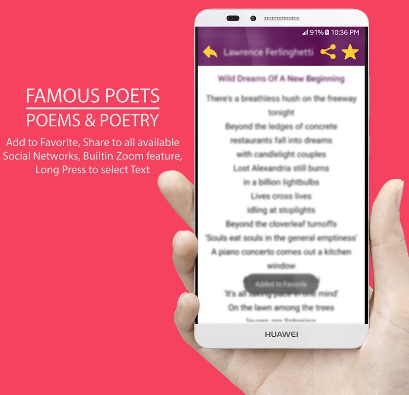 - Thêm vào tính năng yêu thích giúp bài thơ đánh dấu để đọc nó sau này