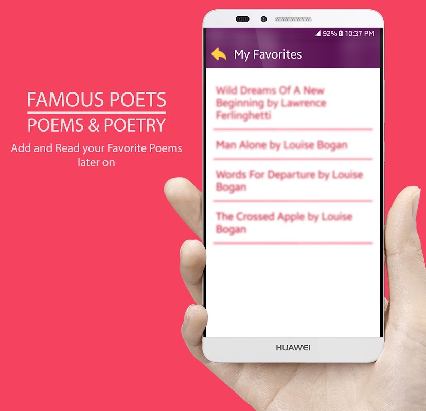 Nếu bạn đang tìm kiếm tình yêu, lãng mạn, tình bạn, cảm hứng, cảm xúc, tôn giáo, yêu nước, những bài thơ cổ điển và thơ, ứng dụng này cung cấp hàng ngàn những bài thơ tiếng Anh nổi tiếng từ thơ của mọi thời đại từ khắp nơi trên thế giới.