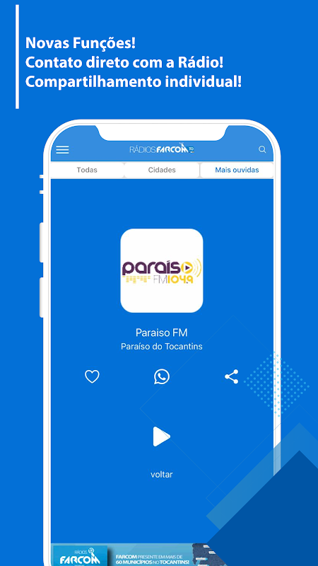 Bây giờ bạn có thể nghe tất cả các đài phát thanh cộng đồng trong Tocantins tại đây trên Ứng dụng Farcom Tocantins Radios, yêu thích radio của bạn và nghe chất lượng tốt những gì xảy ra trong thành phố của bạn!