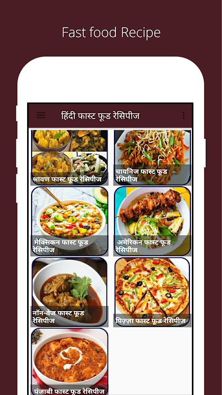 Fast Food Recipe cung cấp các công thức nấu ăn khác nhau trong tiếng Hin-ddi.