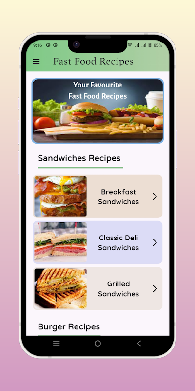 Tận hưởng thế giới đồ ăn nhanh thơm ngon mà không ảnh hưởng đến sức khỏe và hương vị. Ứng dụng công thức thức ăn nhanh của chúng tôi sẽ đưa bạn vào hành trình ẩm thực đa dạng ngay từ nhà bếp của bạn. Cung cấp rất nhiều công thức nấu ăn ngon, ứng dụng này là một kho báu cho cả những đầu bếp giàu kinh nghiệm và những người mới bắt đầu háo hức.