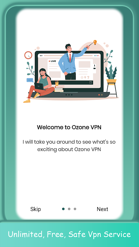 Vận hành Ozone VPN tương đối dễ dàng. Trước tiên, hãy tải xuống ứng dụng, xác nhận thỏa thuận người dùng, nhấn tiếp theo cho đến khi nút nguồn xuất hiện và mở ứng dụng. Sau đó, sự tự do trực tuyến không giới hạn của bạn sẽ bắt đầu.