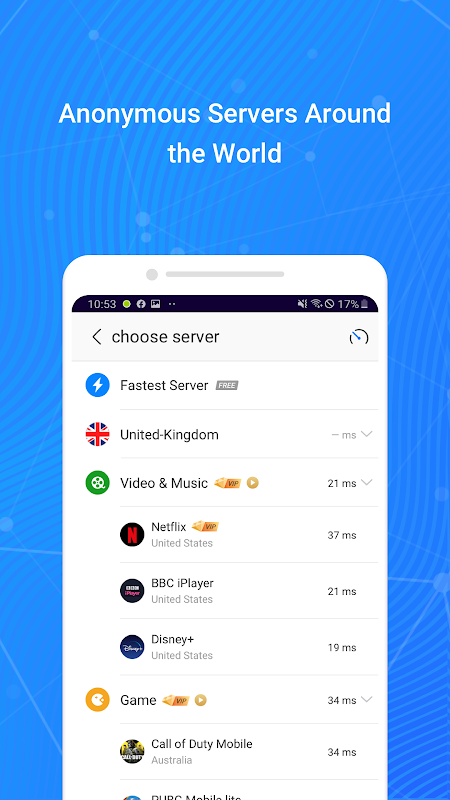 Fast VPN is a ultra-fast tool providing totally free VPN proxy service. Without register, it just need one tap to connect to the fastest server. You can surfing online securely and anonymously. Being a gaming VPN, Fast VPN is your best choice to play mobile games around the world.