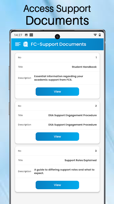 Chỉ cần tải xuống ứng dụng và đăng nhập bằng thông tin xác thực được cấp cho bạn khi đăng ký với FCS. Sau đó, bạn sẽ có quyền truy cập tức thì vào hồ sơ của mình. Ứng dụng chỉ có sẵn cho sinh viên / khách hàng tích cực.
