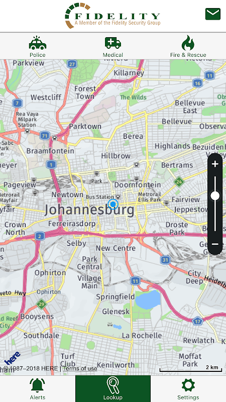 Fidelity Secure is a smartphone app that turns your mobile phone into the ultimate emergency system. It is linked to your Armed Response/ Security Company that sends real-time alerts requesting a range of emergency services.These emergency services include Armed Response/ nearest SAPS, Ambulance, nearest Fire Station