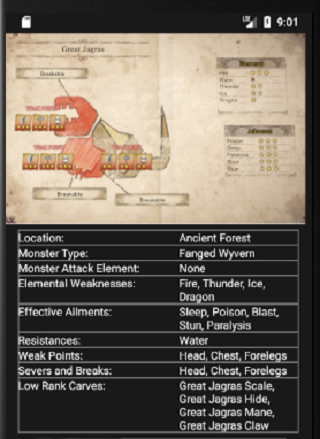 Ứng dụng này được thực hiện bởi các fan Hunter Monster, và nó là không chính thức. Các nội dung trong ứng dụng này không liên kết với, ủng hộ, tài trợ, hoặc phê chuẩn cụ thể của bất kỳ công ty. Ứng dụng này chủ yếu là để giải trí và cho tất cả các fan Monster Hunter để thưởng thức.