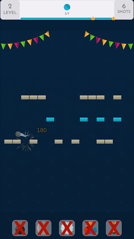 • Một quả bom có thể được kích nổ bởi bất kỳ viên gạch và quả bóng nào để làm cho chúng nổ tung. Hãy chắc chắn nhắm và bấm đúp vào quả bom mà chốt và bóng bạn muốn nổ tung.