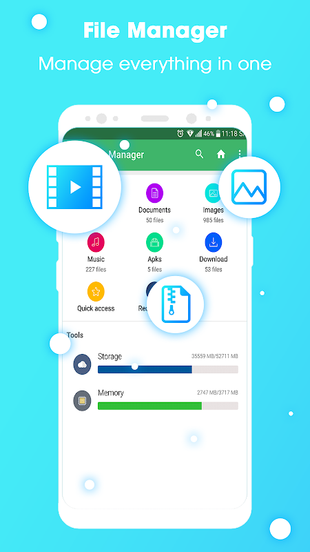 quản lý tập tin mạnh mẽ với khả năng quản lý file, hình ảnh, tài liệu, pdf, apk