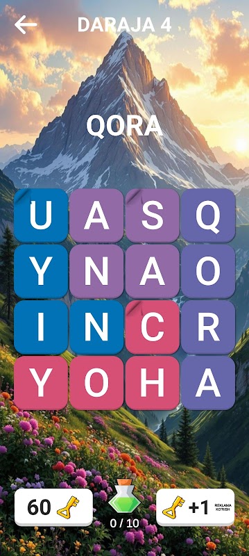 Bizning oʻyinimiz oʻzbek tilidagi 8000 dan ortiq noyob và takrorlanmas soʻzlarni oʻz ichiga oladi. Bu degani – sizni oylab, hatto yillab davom etadigan qiziqarli boshqotirmalar kutmoqda! Kundalik soʻzlardan tortib, adabiyot va fanda uchraydigan noyob atamalarigacha – har bir daraja siz uchun yangilik ochadi. Endi siz hech qachon bir xil, takrorlanadigan darajalarga duch kelmaysiz. Har bir yangi oʻyin – bu yangi bilim và yangi hissiyotlar!