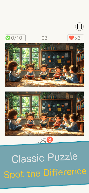 If you’re stuck and can’t find a “difference,” use the hint function! Press the hint button to reveal the area where a difference is located, helping you clear stages smoothly without frustration. Even beginners can enjoy the game with confidence!