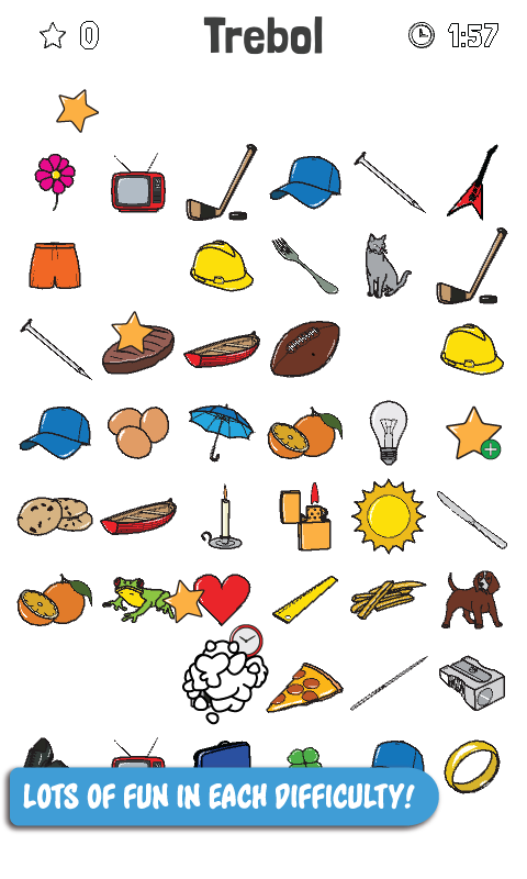 Tìm những bức vẽ tuyệt đẹp và thưởng thức những bức vẽ nguệch ngoạc khác nhau về nhiều loại đồ vật khi bạn thử vận may tìm ra đồ vật phù hợp! Cải thiện khả năng tập trung và quan sát của bạn khi chơi Tìm đồ vật.