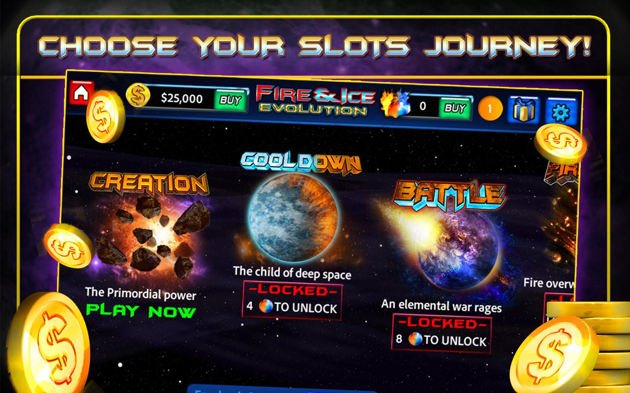 "FIRE AND ICE: EVOLUTION, the scorching hot social version of the hit slot machine played in casinos, is now available on Android!