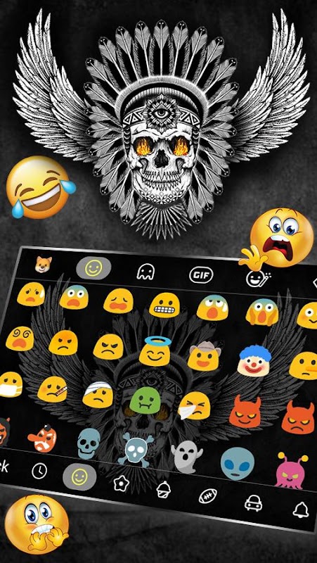 Fire Warrior Skull bàn phím sẽ làm cho thiết bị của bạn trông tuyệt vời! Tải xuống bàn phím Black Devil Skull Keyboard với hiệu ứng chủ đề Devil Death Skeleton. Bàn phím góc nhìn đáng sợ chỉ hoạt động với bàn phím của chúng tôi được cài đặt trên điện thoại của bạn!