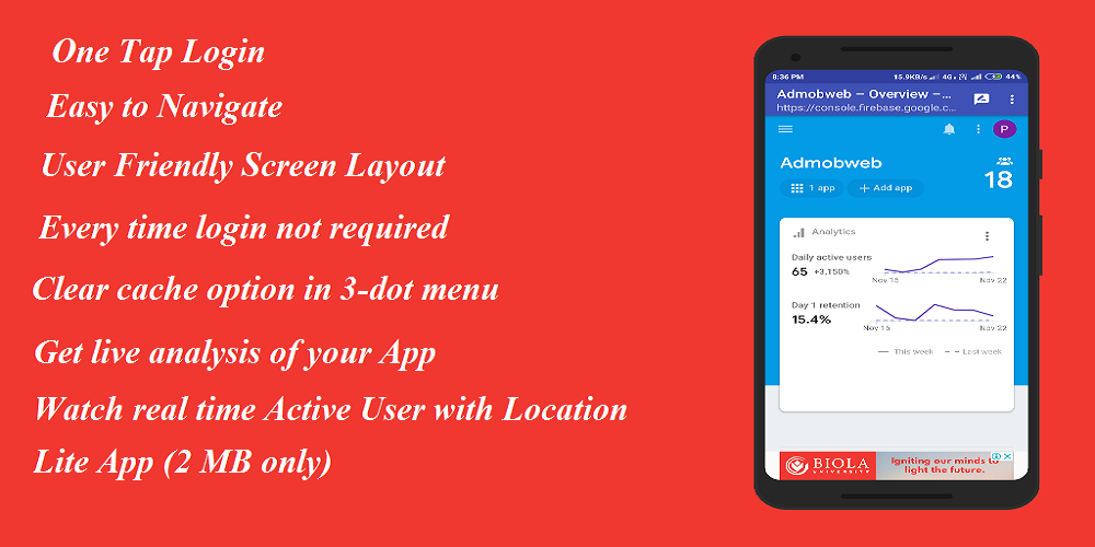 Firebase console lite App(2MB).Use Firebase app to access your Firebase console