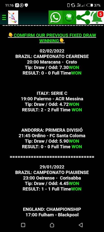 Our VIP members have a 95% chance of winning with the correct score tips. Matches are predetermined.