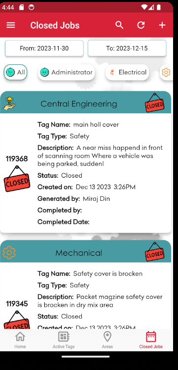Ứng dụng này hiển thị dữ liệu thời gian thực về các truy vấn, giấy phép làm việc và vé do các thành viên được ủy quyền tạo ra.