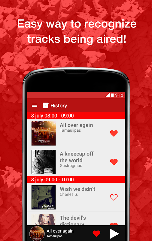• Easily add tracks to your favourite by simply clicking the «heart» icon.