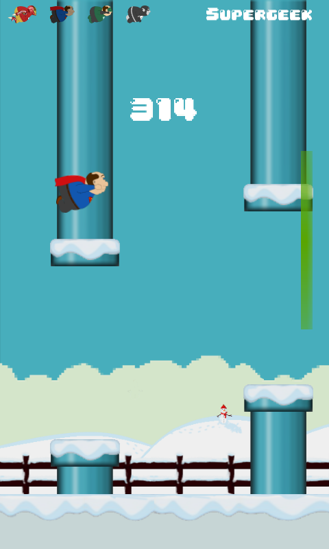 Navigate the Geek by simply tapping the screen. Tap to move up or leave him alone to fall down. Try to avoid all obstacles and make good use of the power-ups you pickup along the way!