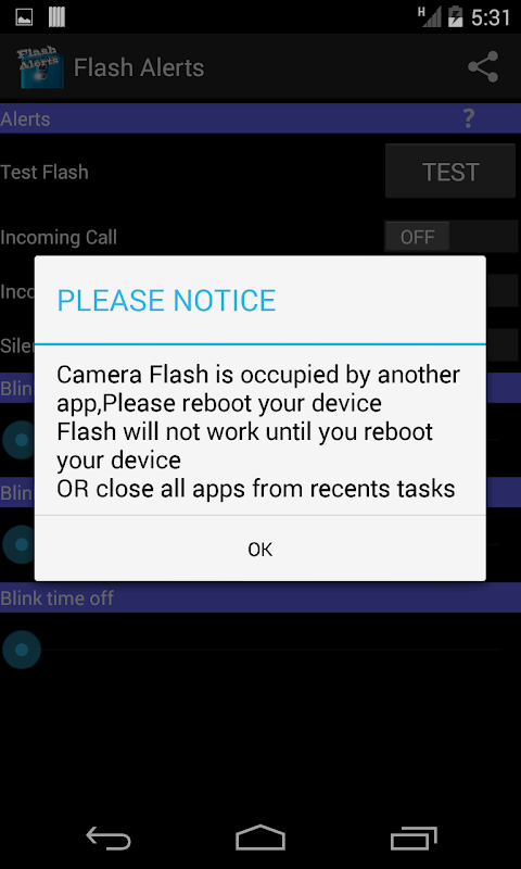đèn flash ứng dụng cảnh báo cho cuộc gọi đến, thông báo sms