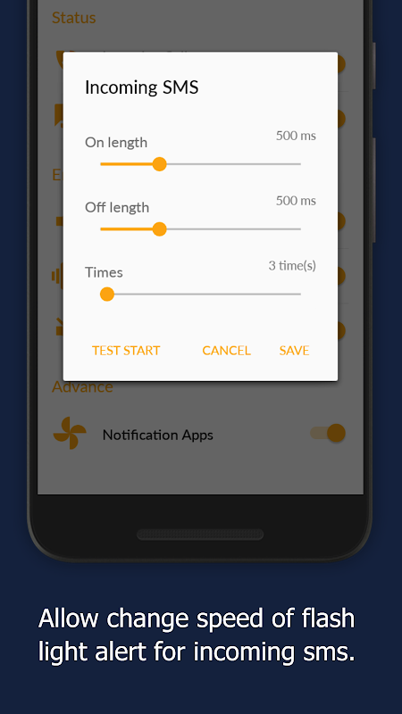 Flash blinker for calls and SMS text messages and you can choose app to enable flash alert for.