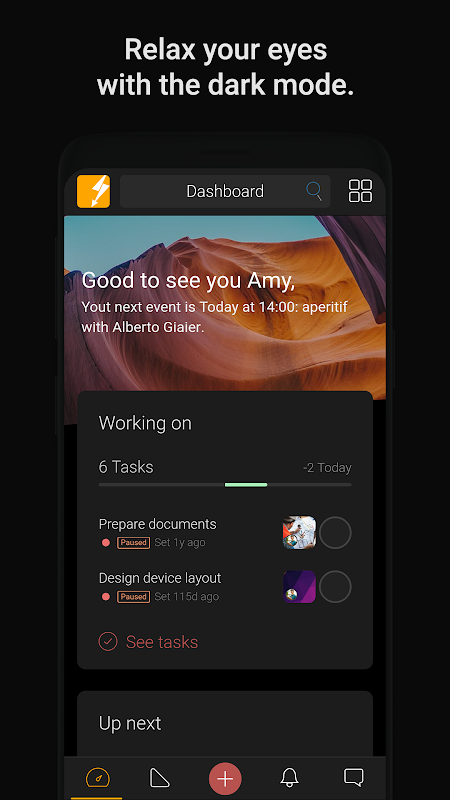 Tất cả mọi thứ bạn làm và phải làm được tóm tắt trong bảng điều khiển của bạn. Đó là nơi bạn bắt đầu làm việc hàng ngày: các nhiệm vụ, cuộc hẹn và phân tích thời gian làm việc của bạn đều ở một nơi, giúp tâm trí của bạn tập trung vào những gì tiếp theo.