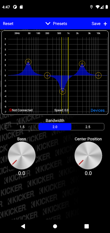 KICKER® FlexTune ™ hoạt động liền mạch với điện thoại, máy tính bảng và hệ thống âm thanh KICKER mới của bạn để cá nhân hóa âm thanh của bạn. Tăng độ rõ nét? Không vấn đề gì. Muốn có thêm âm trầm KICKER? Xoay một núm. Dễ dàng tinh chỉnh âm thanh chỉ bằng một cú chạm vào bộ cân bằng năm băng tần đồ họa, ngay từ màn hình điện thoại hoặc máy tính bảng của bạn.