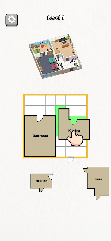 Một trò chơi sơ đồ tầng trong đó các mảnh phòng được ghép lại với nhau để tạo thành một ngôi nhà.