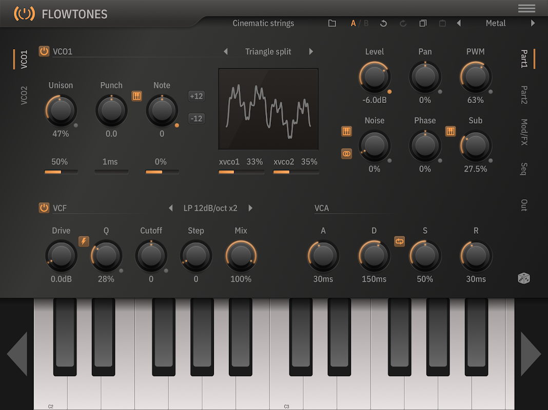 Tạo, chỉnh sửa và tinh chỉnh các bản vá lỗi của bạn khi đang di chuyển. Sử dụng bàn phím piano tích hợp để chơi và nghe. Tích hợp các chuỗi âm thanh hấp dẫn bằng bộ sắp xếp tích hợp. Tạo thư viện các bản vá lỗi trên thiết bị di động của bạn.