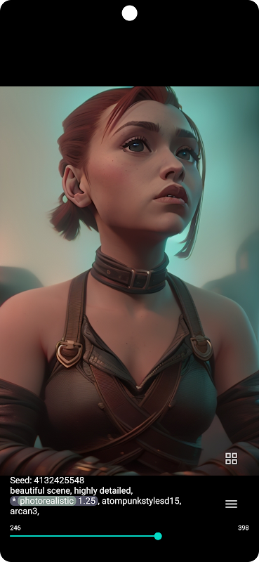 Những gì bạn nhận được là một dòng hình ảnh do AI tạo ra liên tục. Chỉ cần cuộn sang phải để nhận những cái mới và cuộn sang trái để truy cập lịch sử. Bạn có thể sửa đổi lời nhắc và cài đặt và ra lệnh cho nó tạo mới (với hạt giống khác) hoặc tạo lại (với cùng một hạt giống).