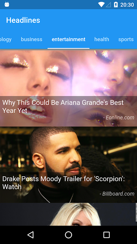 A Simple News App built with Flutter. In this app, there is a Headline page, which will display top news from newsapi.org. When click on a Headline item, it will open a new Webview page to display details.