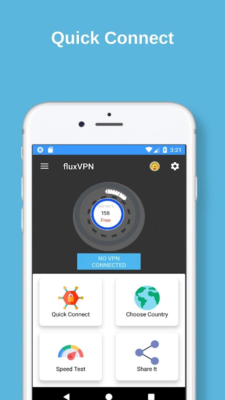 Flux VPN proxy brings you a single tap solution where one click is all it takes to start/stop a secure VPN free connection.