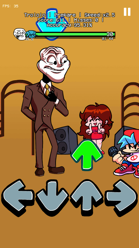 GF giới thiệu BF với chú của cô ấy, ông Trololo. Họ bắt đầu trò chuyện bằng âm nhạc vui nhộn trong một trận chiến rap của FNF. Đó là khoảng thời gian vui nhộn bên nhau. Tuy nhiên, Trololo bất ngờ bị điều khiển bởi một người đàn ông bí ẩn - Trollge. Sau đó anh ta bắt đầu tấn công GF và BF. Bạn nên làm gì để giúp họ?