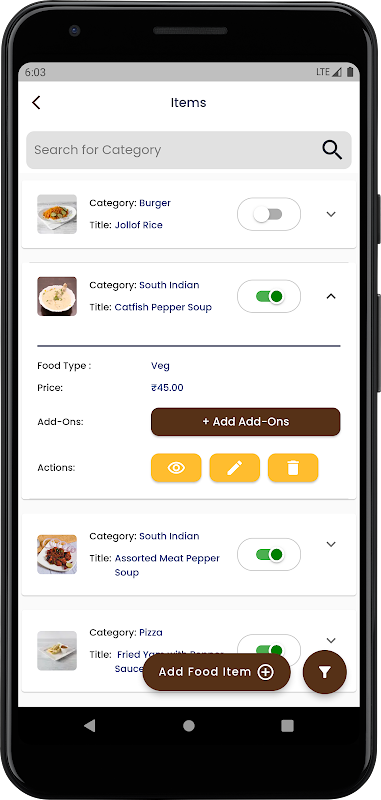 Nền tảng của bất kỳ dịch vụ giao đồ ăn nào cũng là thực đơn phong phú và ngon miệng. Chủ nhà hàng có thể dễ dàng liệt kê, thêm, cập nhật và xóa các món khỏi thực đơn của mình bằng mô-đun Quản lý món ăn. Họ có thể hiển thị những gì họ phải bán, thay đổi giá và loại bỏ những mặt hàng hết hàng hoặc không còn hàng bằng giao diện dễ sử dụng. Mô-đun này đảm bảo rằng khách hàng có quyền truy cập vào các tùy chọn chính xác và hiện tại nhất đồng thời hợp lý hóa việc bảo trì menu.
